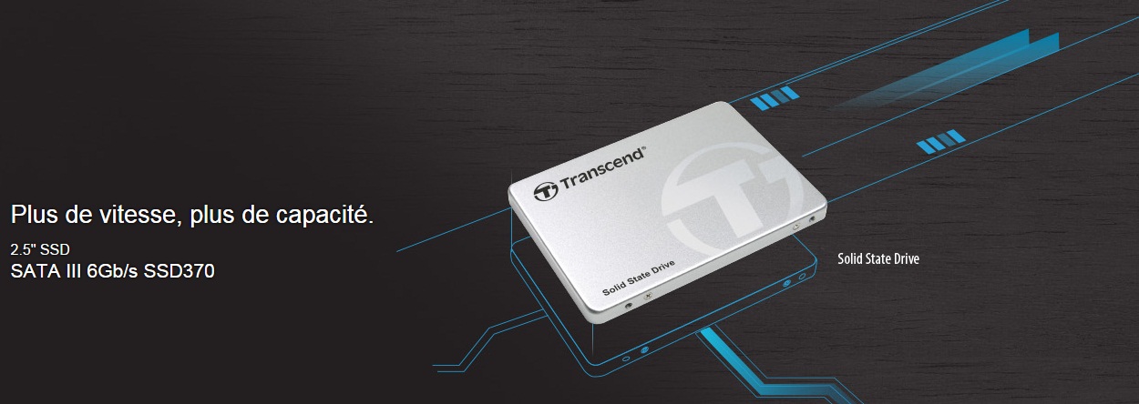 Découvrez une nouvelle dimension. Le SSD Transcend SSD370 SATA III SSD 6Gb/s est incroyablement rapide, offre un grand choix de capacités jusqu'à 1To, est compact et léger, résiste aux chocs et vibrations et supporte le mode DevSleep mode. Profitez d'une expérience informatique unique dès à présent grâce au SSD370.