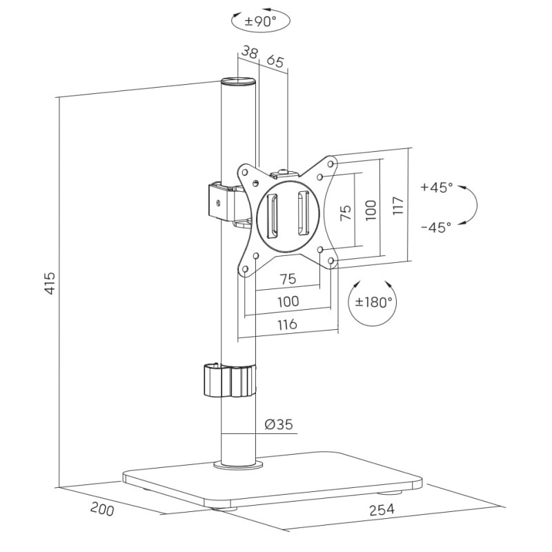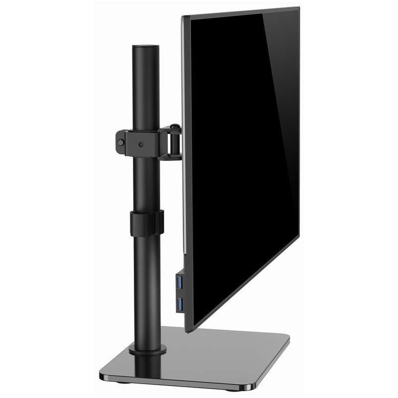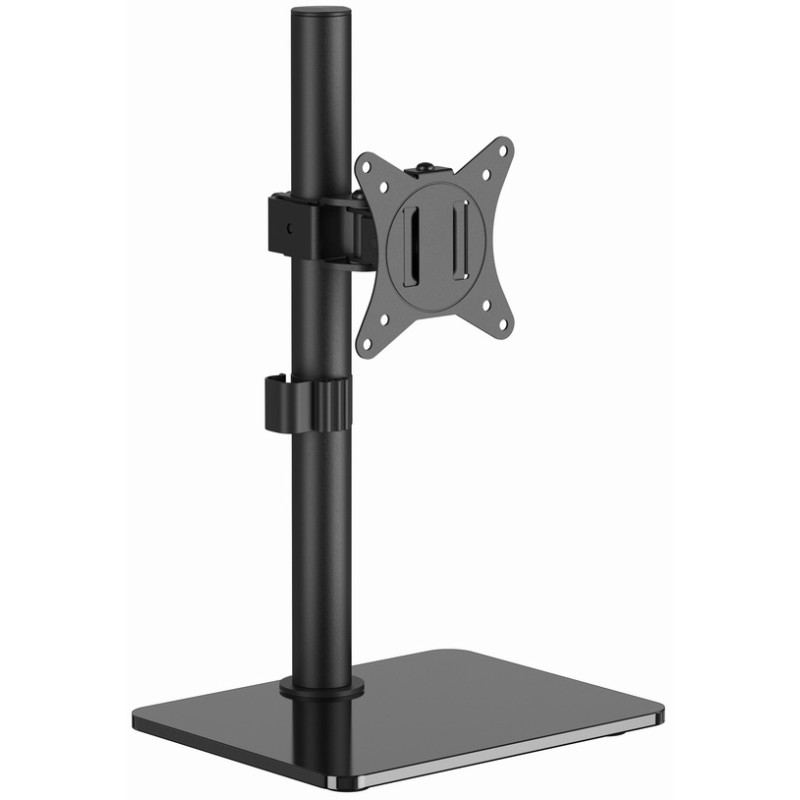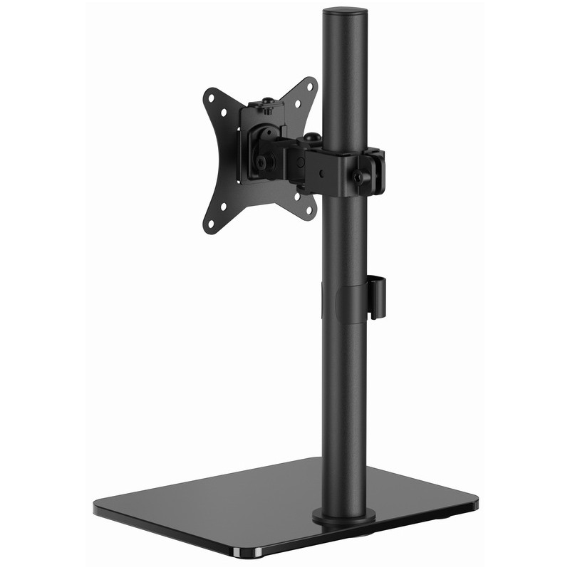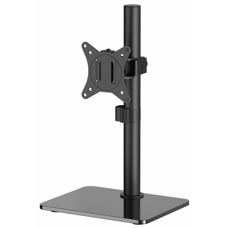 Support de bureau GEMBIRD pour moniteur réglable en hauteur, avec base en verre trempé - Finition : Revêtement en poudre - Taille d'écran compatible : 17" à 32" - Matériaux : Acier, plastique, verre trempé - Charge maximale : 9 kg - Réglage en hauteur : 420 mm - Inclinaison : +45° à -45° - Rotation : +90° à -90° - Rotation de l'écran : +180° à -180° - Compatibilité VESA : 75 x 75 mm, 100 x 100 mm - Poids net : 2,5 kg - Dimensions : 390 x 280 x 454 mm - Couleur Noir mat - Garantie 1 an