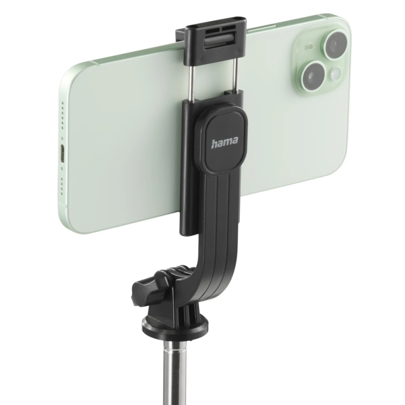 trépied selfie Hama Fancy Stand 110 cm - Des selfies, des vidéos et des blogs partout : parfait pour le bagage à main - Poignée rainurée : la perche à selfies tient bien en main - 7 segments : extensible 6 fois jusqu’à 110 cm - Fixation rapide - Support pour portable pivotable pour format portrait ou horizontal - Très grande flexibilité pour une largeur de smartphone de 6,2 à 9,0 cm - Bluetooth 5.3 - Télécommande : déclencheur Bluetooth amovible pour appareils photos de smartphones et tablettes - Portée de 10 m - Longueur max : 110 cm - Longueur mini : 31 cm - Matière : Plastique, Aluminium - Poids 195 g - Couleur Noir - Garantie 1 an