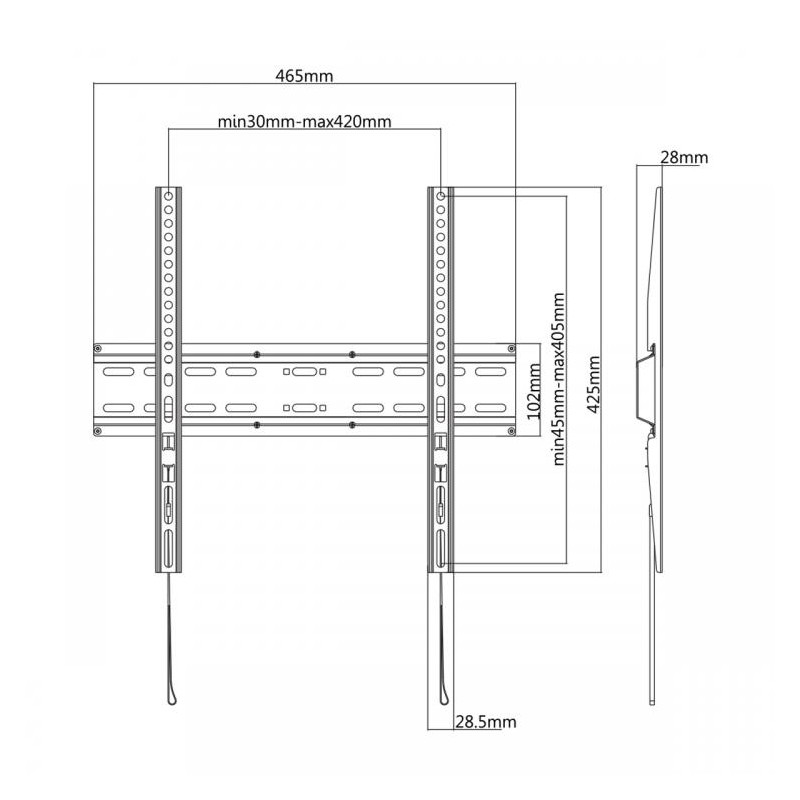 Support Mural SBOX PLB-2544F - Taille de l'écran: 32" - 55" - Poids maximum du moniteur 35 kg - Distance du mur 28 mm - Montage: VESA 200x200 / 400x200 / 300x300 / 400x400 / 400x300 / 300x200 - Dimensions: 28 x 465 x 425 mm - Couleur Noir - Garantie 1 an