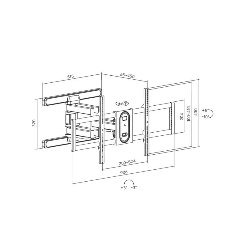 Support Mural SBOX PLB-8148 - Type de montage : Inclinable et pivotant avec poignée - Taille minimale de l'écran : 43'' / 109 cm - Taille maximale de l'écran : 100'' / 254 cm - Charge maximale : 60 kg - VESA minimum : 200x200 - VESA maximum : 800 x 400 - Distance minimale au mur : 65 mm - Distance maximale au mur : 480 mm - Inclinaison verticale : 5°/ -10° - Pivotement : +60°/ -60° - Gestion des câbles - Finition de surface : Revêtement en poudre - Matériau : Acier - Finition de surface : Revêtement en poudre - Dimensions : 480 x 906 x 430 mm - Poids : 9 Kg - Couleur Noir - Garantie 1 an