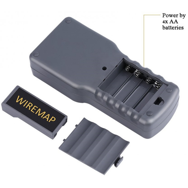 Testeur de câble Réseau RJ45 - écran LCD - fonctionnalités : localisation de l'emplacement du défaut, mesure de la longueur des câbles, détection des courts-circuits ; interruptions; connexions inversées, mesure de la distance au défaut, étalonnage dynamique de mesure de longueur de câble, compensation de température, signalisation sonore, identification de terminaisons - arrêt automatique après 30 minutes - Dimensions 180 x 80 x 40 mm - Garantie 1 an
