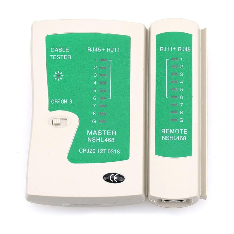 Kit Testeur câbles réseau RJ11 RJ12 RJ45 Cat5 / CAT6 LAN avec pince à Sertir - Pour le test LAN - S'exécute automatiquement tous les tests de continuité, ouvert, court-circuit et traversée de câble par paires - Lent et rapide interrupteur et indicateur de LED montre dysfonctionnements - utilisé sur RJ11, RJ12, 10 base T et câbles TOKEN Ring - Alimentation pile 9V