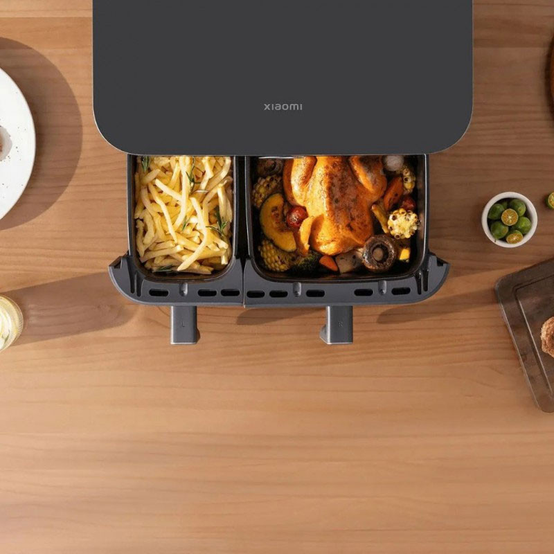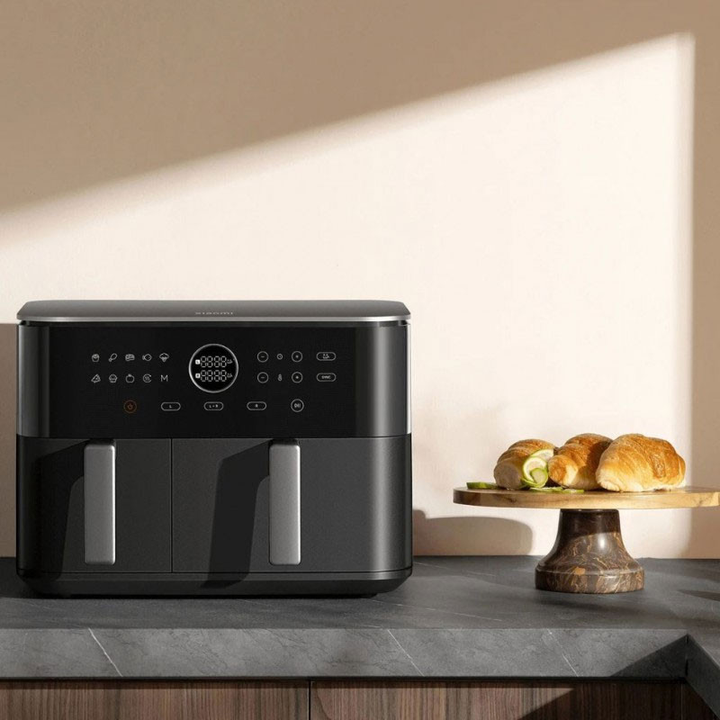AIR FRYER XIAOMI - Capacité : 10 Litres (3,5 L (gauche) + 6,5 L (droite)) - Puissance : 2700 W - Nombre de Programmes : 9 programmes - Nombre de recettes : 101 recettes - Température Réglable : jusqu'à 230°C - Poignée anti brûlure - Fréquence nominale : 50/60 Hz - Couleur : Noir - Garantie 1an