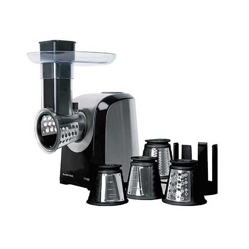 Robot hachoir à salade Evertek Finoo - Puissance 150W - Finition Inox - Bouton Marche/Arrêt - Tube d'alimentation large de 90 mm - Trancheuse électrique : râpe , trancheuse - Couleur Noir et Gris - Garantie 1 an