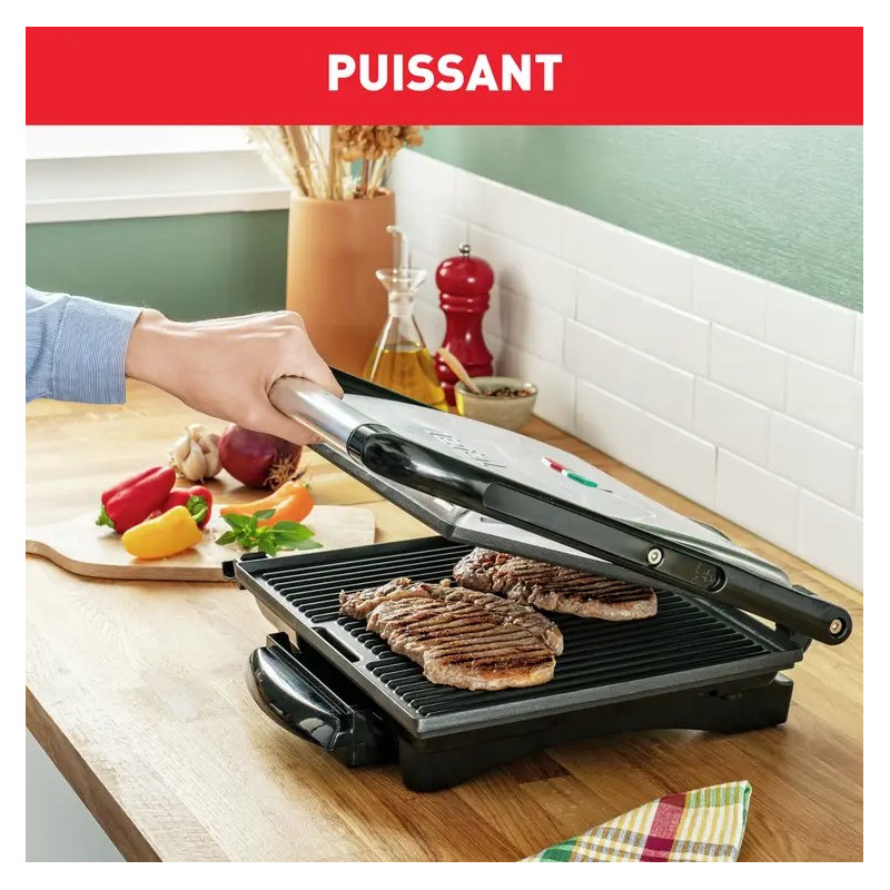 Le gril viande/panini Tristar GR-2853 vous permet de préparer tous types d'ingrédients d'une façon saine et en un rien de temps. Comme vous pouvez ouvrir le gril à 180 º, vous pouvez également l'utiliser comme un gril de table. Vous pouvez déterminer la température vous-même en utilisant le thermostat.