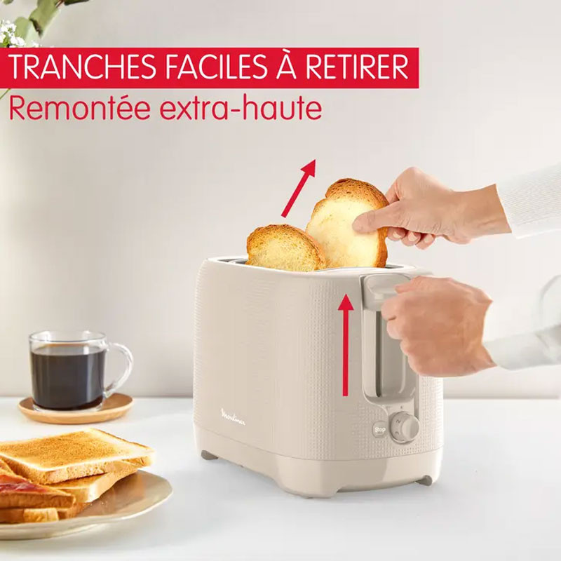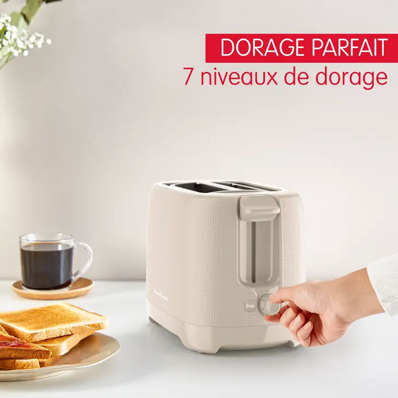 Grille Pain MOULINEX - Puissance : 850 W - Nombre de fentes : 2 fentes - Nombre de tranches : 2 Toasts - Positions réglables : 7 positions - Thermostat Manuel - Tiroir ramasse miettes - Arrêt automatique - Parois froides - Rangement cordon - Pieds antidérapant - Dimensions (LxHxP) : 13.4 x 18.7 x 40.3 cm - Couleur : Gris Chaud - Garantie 1an