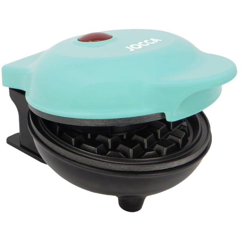 Appareil à Gaufres JOCCA - Puissance : 500 W - Dimensions de la plaque : 12 cm - Indicateur lumineux - Temps de cuisson : 2-3 minutes - Boîtier Cold Touch - Plaques antiadhésives - Pieds antidérapants - Compartiment pour câble Facilite le rangement - Couleur : Turquoise - Garantie 1an