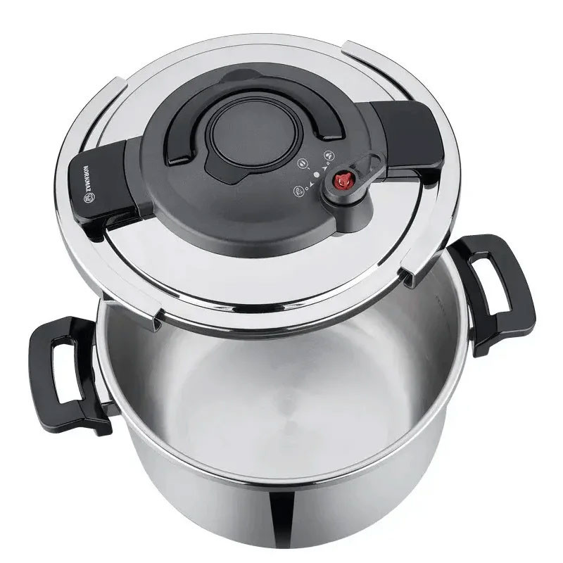 SET KORKMAZ - Capacité Cocotte : 7 Litres (22 cm) - Capacité Faitout : 4 Litres - Fonction de pression de cuisson en 2 étapes - Matériau : Acier inoxydable - Base de capsule en aluminium assurant une conduction thermique homogène - Compatible avec l’induction - Facile à ouvrir - Couleur Inox
