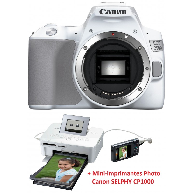 Appareil Photo Reflex Numérique Canon EOS 250D / Résolution 4K / 18-55mm IS - Écran amovible 3" LCD - Capteur APS-C de 24.1 MP - Viseur optique - Distance focale Env. 1,6x - Autofocus CMOS Dual Pixel - Wi-Fi - Bluetooth - Dimensions 122,4 × 92,6 × 69,8 mm - Garantie 1 an + Mini-imprimantes Photo Canon SELPHY CP1000 (CP1000-WH)