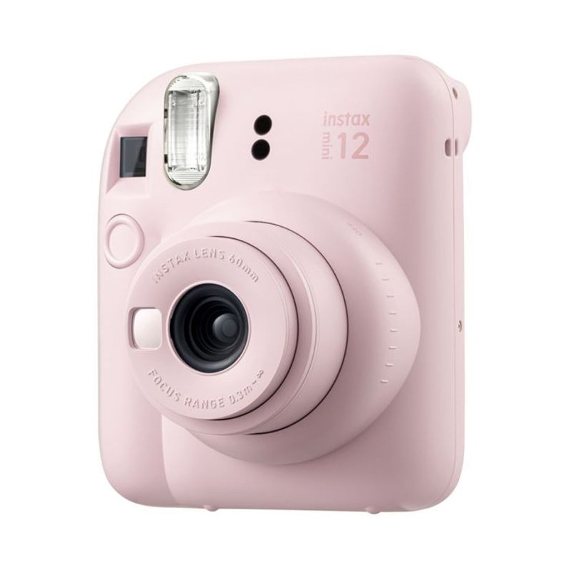 Appareil Photo Instantané FUJIFILM INSTAX Mini 12 - Taille d'image: 62 × 46 mm - Objectif: 2 composants, 2 éléments, f = 60 mm, 1:12.7 - Viseur d’image réelle, 0.37 ×, avec spot cible - Plage de mise au point: 0.3 m et au-delà (utilisez le mode Close-Up de 0.3 m à 0.5 m) - Obturateur électronique programmé 1/2 à 1/250 sec - Synchro lente pour faible luminosité - Contrôle de l'exposition: Automatique, Niveaux 5.0 à 14.5 (ISO 800) - Éjection du film Automatique - Temps de développement du film: Environ 90 secondes - Flash: Déclenchement constant du flash, temps de recyclage: 7 sec ou moins, portée effective du flash: 0.3 à 2.2 m - Alimentation: 2 piles alcalines AA (LR6) - Autonomie: environ 10 packs de film instax mini de 10 vues chacun - Temps de mise hors tension automatique: Après 5 minutes - Dimensions: 104 × 66.6 × 122 mm - Poids: 306 g - Couleur Rose - Garantie 1 an