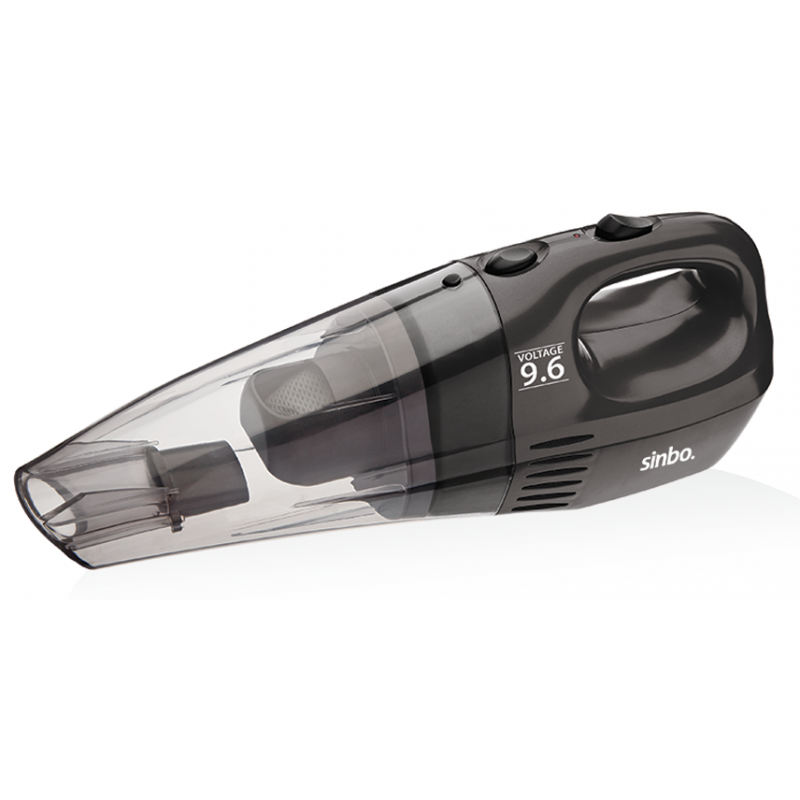 Mini Aspirateur Sinbo Pour Voiture Portable - Batterie Rechargeable - Puissance Batterie 9.6V - 2x Accessoires: Suceur de crevasse et Buse de rembourrage - Filtre Lavable - Nettoyage Humide / Sec - Couleur Noir - Garantie 1 an