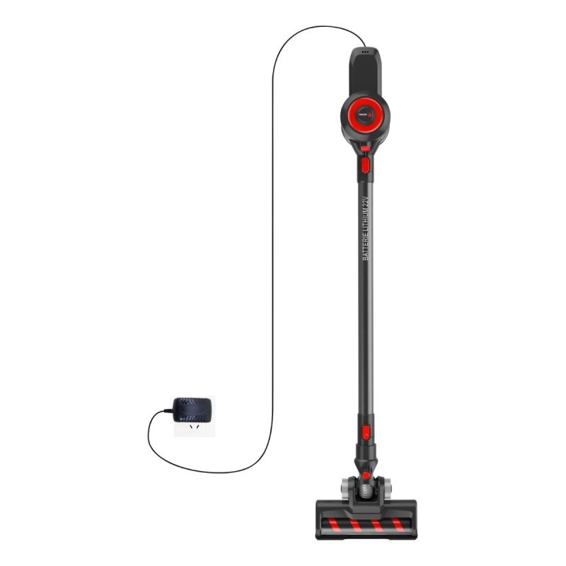 ASPIRATEUR BALAI MULTIFONCTION 2en1 FAGOR FG910 sans sac - Capacité Bac: 0.8 Litres - Puissance 120 Watts - Niveau sonore maximum: 68 dB - Puissance Réglable par un variateur électronique à 2 vitesses - Indicateur réservoir plein - Brosse motorisée Avec un éclairage - 4 LED sur la brosse - Batterie Lithium-Ion 2000 mAh - Autonomie 35 min - Temps de charge: 4 h 30 min - Dépression: 10 kPa - Poids 2.3 Kg - Couleur Noir et rouge - Garantie 1 an