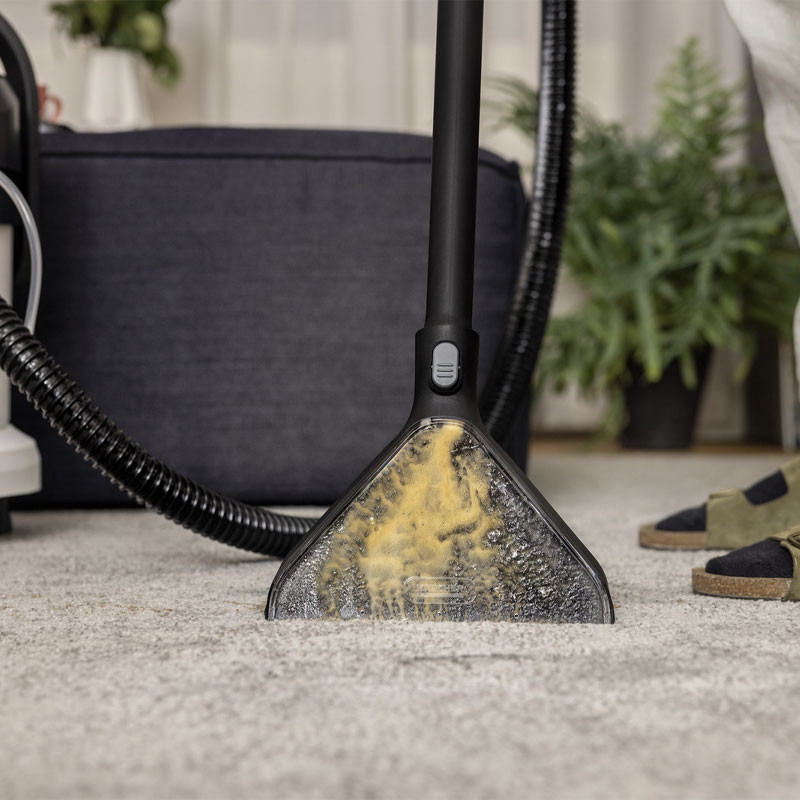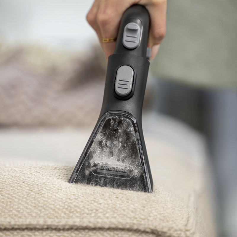 Aspirateur Injecteur, extracteur KÄRCHER - Puissance d'entrée nominale : 1000W - Capacité du réservoir d'eau sale : 4 Litres - Capacité du conteneur d'eau douce : 4 Litres - Longueur du tuyau d'aspiration : 2 m - Système de confort 2 en 1 : tuyau d'extraction par pulvérisation intégré - 2x Tubes d'extraction par pulvérisation en plastique : 0,5 m - Largeur de travail : 227mm - Buse d'extraction par pulvérisation pour sol avec adaptateur pour sol dur : 227 mm - Buse d'extraction par pulvérisation pour revêtement : 88 mm - 1x Sac filtrant en polaire - Poignée de transport pratique 3 en 1 - Câble d'alimentation : 6m - Poids Net : 7,6 Kg - Dimensions (L × W × H) : 430 x 385 x 535mm - Couleur : Blanc - Garantie 1an
