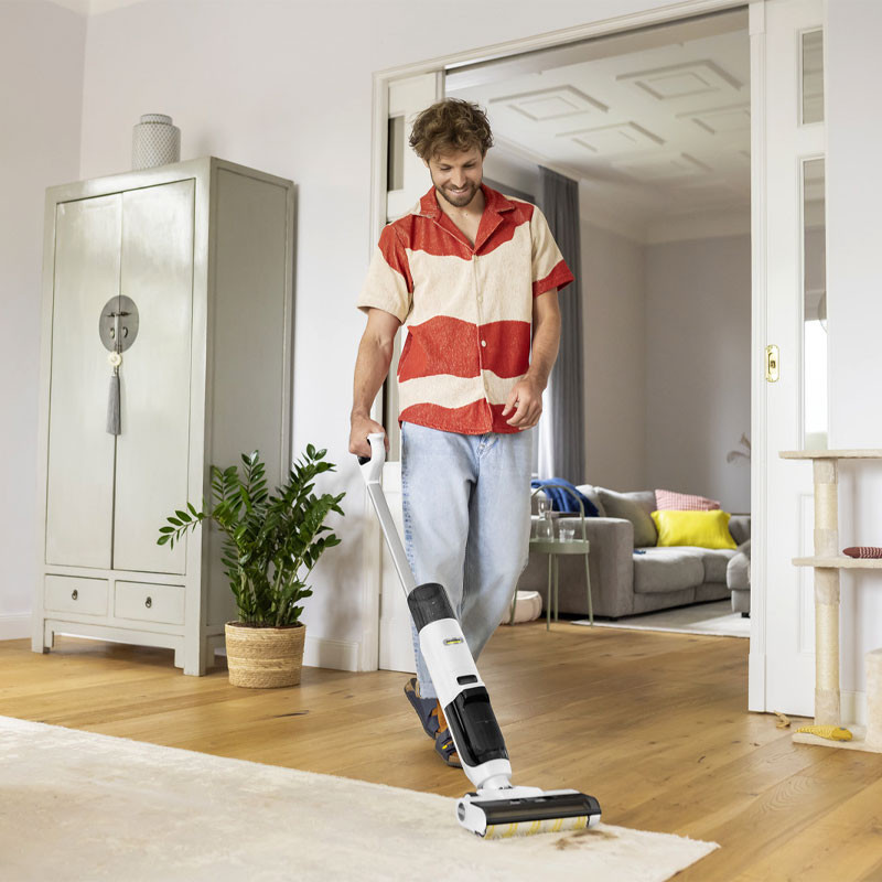 Aspirateur KARCHER - Capacité du réservoir, eau douce : 800ml - Capacité du réservoir, eau sale : 425ml - Performances de surface par charge de batterie : 110m² - Temps de séchage du sol : 2min - Largeur de travail du rouleau : 240mm - Rouleau multi surfaces : 1 Pièce - Brosse de nettoyage - 1x filtre plissé plat - 1x Filtre éponge - Mode autonettoyant - Système à deux réservoirs - Système de double filtre - Roues de transport - Temps de charge de la batterie : 160min - Autonomie de la batterie max : 25min - Type de batterie : Batterie lithium ion - Poids Net : 3,6kg - Dimensions (L×W×H) : 1138 x 268 x 280mm - Couleur : Blanc - Garantie 1an