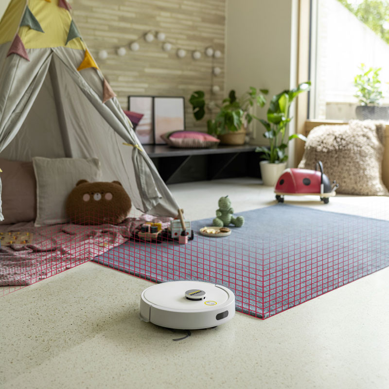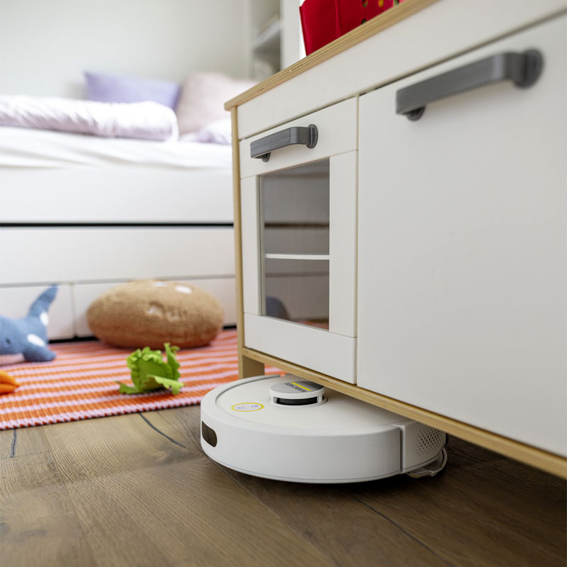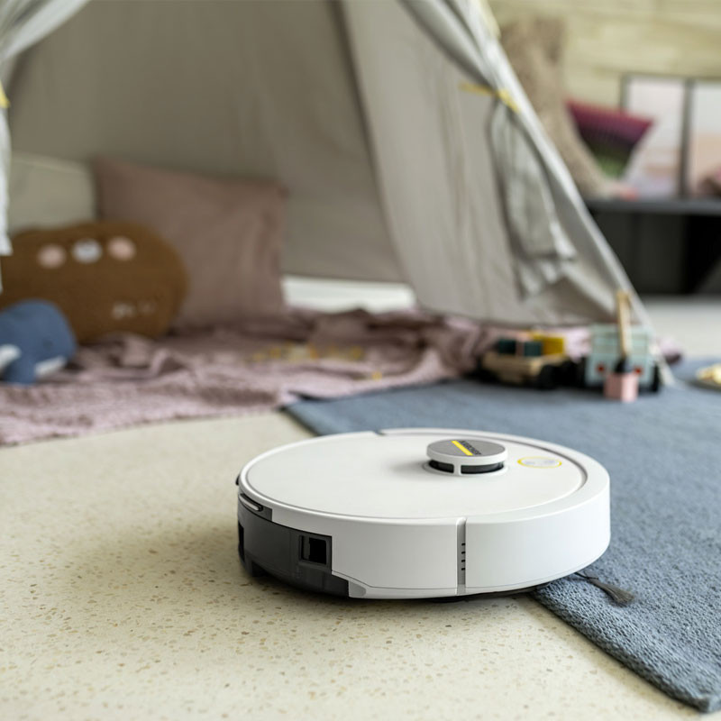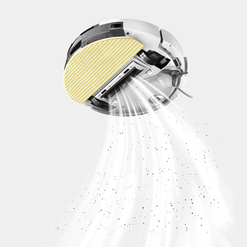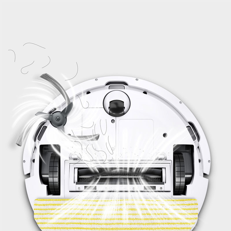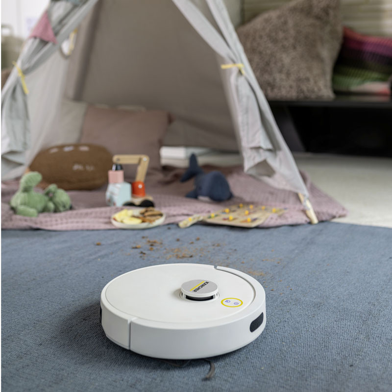 Aspirateur Robot KÄRCHER - Réservoir d'eau douce 2 en 1 : 280ml - Conteneur à déchets 2 en 1 : 240ml - Puissance d'aspiration max : 15000Pa - Nombre de phases en cours : 1Ph - Performances de la zone (en fonction du mode de nettoyage) : 45m²/h - Capacité de la batterie : 2,6Ah (Batterie lithium-ion) - Temps de charge de la batterie : 230min - Durée d'exécution par charge : 130min - Niveau de puissance acoustique : <67dB - Hauteur de l'aspirateur robot : 97mm - Dimensions avec borne de recharge (LxWxH) : 146 x 66 x 101mm - Couleur : Blanc - Garantie 1an