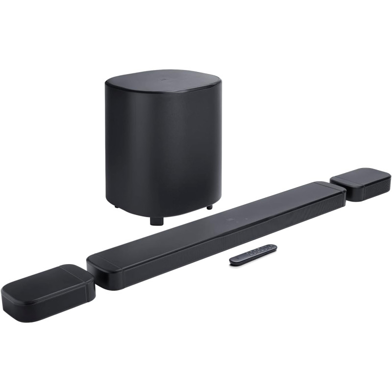 Barre de son JBL BAR 800 MK2 - Système audio : canal 7.1 - Puissance de sortie totale du haut-parleur : 780W - Puissance de sortie du haut-parleur surround : 2x 40W - Transducteur du caisson de basses : 260 mm - batterie au lithium : 3 635 V, 3 283 mAh - Autonomie de l’enceinte surround détachable : jusqu’à 10 heures - Réponse en fréquence : 35 Hz – 20 kHz (-6 dB) - Entrées audio : Optique, Bluetooth - Connexion : Bluetooth 5.3 - Wi-Fi - Puissance de l’émetteur Bluetooth : < 15 dBm / Wi-Fi 2,4G : < 20 dBm / sans fil de 2,4 GHz : < 10 dBm (PIRE) - 1x HDMI, HDMI eARC - PureVoice 2.0 et MultiBeam 3.0 - Intercommunication HDR : HDR10+, Dolby Vision - Caisson de Basses de 25,4 cm - Enceintes détachables - Dimensions : 1 163 x 52 x 128 mm - Poids de l’emballage : 20.8 Kg - Couleur Noir - Garantie 1 an