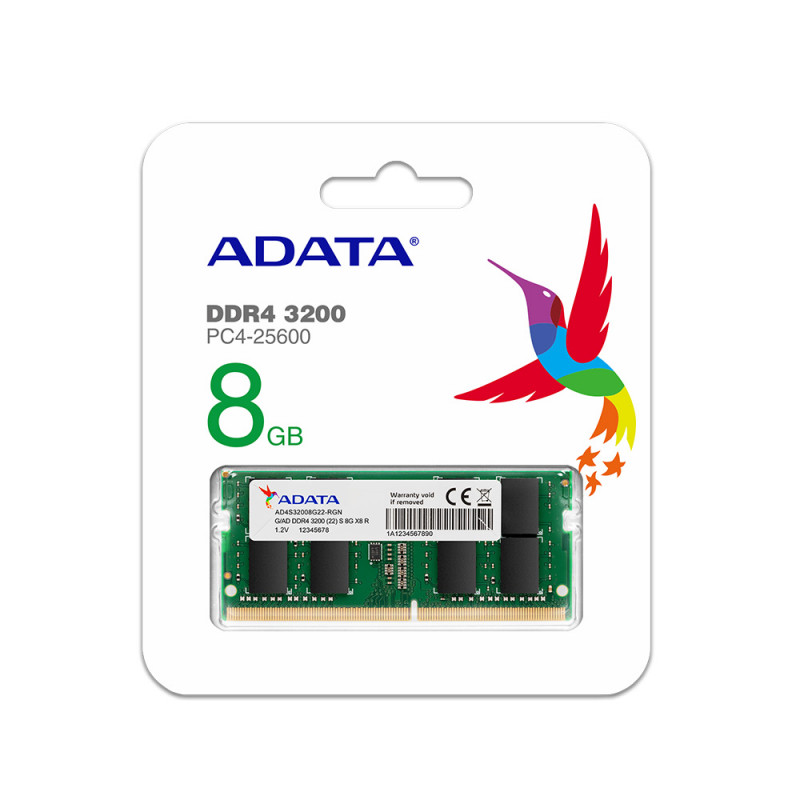 Barrette Mémoire SoDIMM pour PC Portable ADATA - Capacité 8 Go DDR4 - Fréquence 3200 MHz