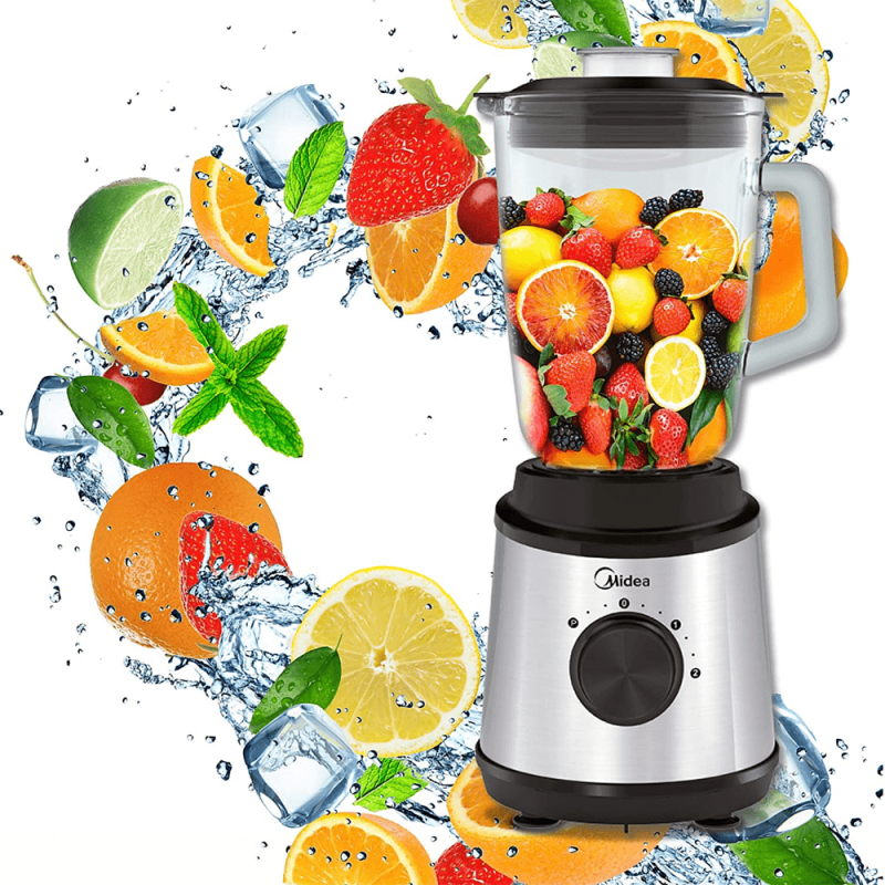 Blender Midea BL6006W - Puissance 800W - Capacité bol 1.5L - 2 vitesses - Vase en verre renforcé - Composants lavables au lave-vaisselle - Lames en acier inoxydable - Couleur Noir - Garantie 1 an
