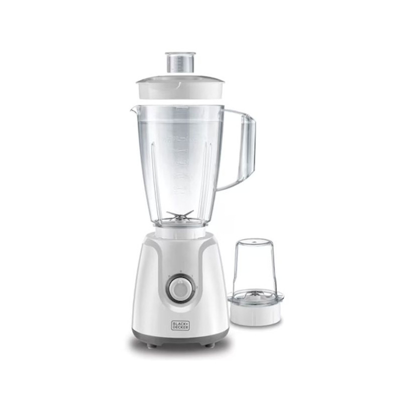 Blender BLACK AND DECKER - Puissance : 400 Watts - Capacité : 1.5 Litres - Nombre de vitesse : 2 Vitesses - Lame en acier inoxydable - Matériau : Plastique - Alimentation : 220V / 50-60Hz - Avec Moulin - Nettoyage facile - Facile à utiliser - Mixeur multi-usages pour mélanger les légumes et les fruits - Couleur : Blanc - Garantie : 1 an