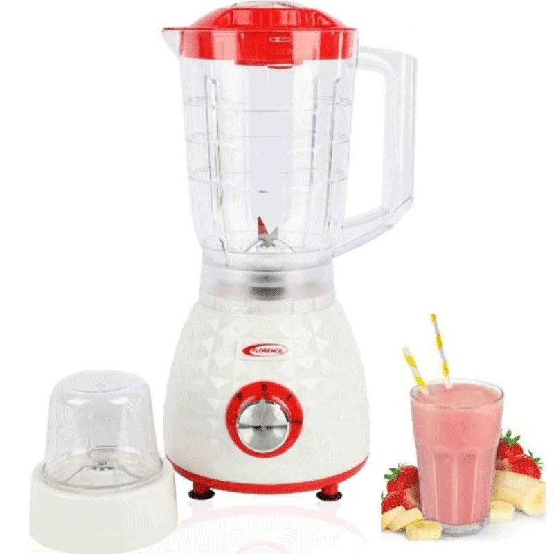 Blender Florence - Capacité : 1.5 Litres - Puissance : 1000W - Nombre de vitesses : 2 vitesses - Nettoyage Facile - 6 Lames en acier inoxydables - Mixeur multi-usages pour mélanger les légumes et les fruits - Avec Moulin - Matériau : Plastique - Couleur : Rouge- Garantie : 1 an