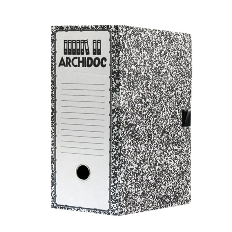 Boite d'archive Archidoc Dos 150 mm - Carton imprimé vernis - Etiquette imprimée sur le dos - Fermeture avec bouton pression - Format : 24 x 32 cm - Couleur Gris