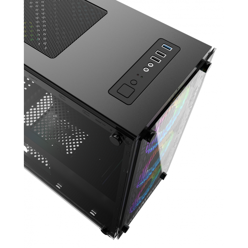 Avec sa façade et sa fenêtre en verre trempé, vous pourrez facilement admirer l'intérieur de votre boîtier NYX 3F RGB. Il ne vous laissera certainement pas indifférent ! Ce modèle Mini Tour est doté d'un refroidissement performant avec ses 4 emplacements pour ventilateurs, dont 3 ventilateurs 120 mm RGB pré-installés.