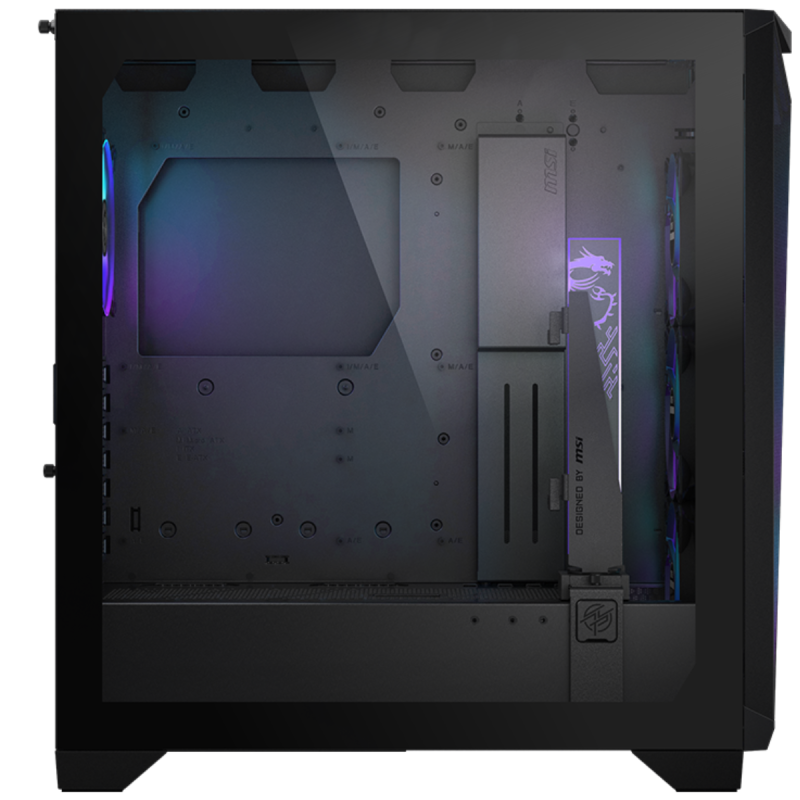 Boîtier Gamer MSI MPG GUNGNIR 300R AIRFLOW / Noir - Format Mid-Tower - Format de carte mère Supporté: E-ATX (jusqu'à 280 x 305 mm) / ATX / M-ATX / ITX - 2x USB 3.2 - 1x USB 3.2 - 1x entrée/sortie audio - 6x Baies de Disques 2.5” - 2x Baies de Disques 2.5”/3.5” - 7x Slot d'extension - Longueur maximale de la carte graphique: 360 mm - Longueur maximale DU VENTIRAD: 175 mm - Alimentation ATX - LONGUEUR MAXIMUM BLOC D'ALIMENTATION: 220 mm - TAILLE DE VENTILATEUR SUPPORTÉE: (Haut: 3x 120 mm / 2x 140 mm, Avant: 3x 120 mm / 3x 140 mm, Arrière: 1x 120 mm / 1x 140 mm) - 2x Emplacement PSU 120 mm - 2x Bracket GPU vertical 60 mm (tépaisseur 15 mm) - VENTILATEUR PRÉINSTALLÉ: (Avant: 3x ARGB PWM 120 mm, Arrière: 1x ARGB PWM 120 mm) - LONGUEUR DU RADIATEUR SUPPORTÉE: (Haut/Avant: 120 / 140 / 240 / 280 / 360 mm), (Arrière: 120 / 140 mm) - Dimensions: 505 x 235 x 510 mm - Poids 10.9 kg - Garantie 1 an