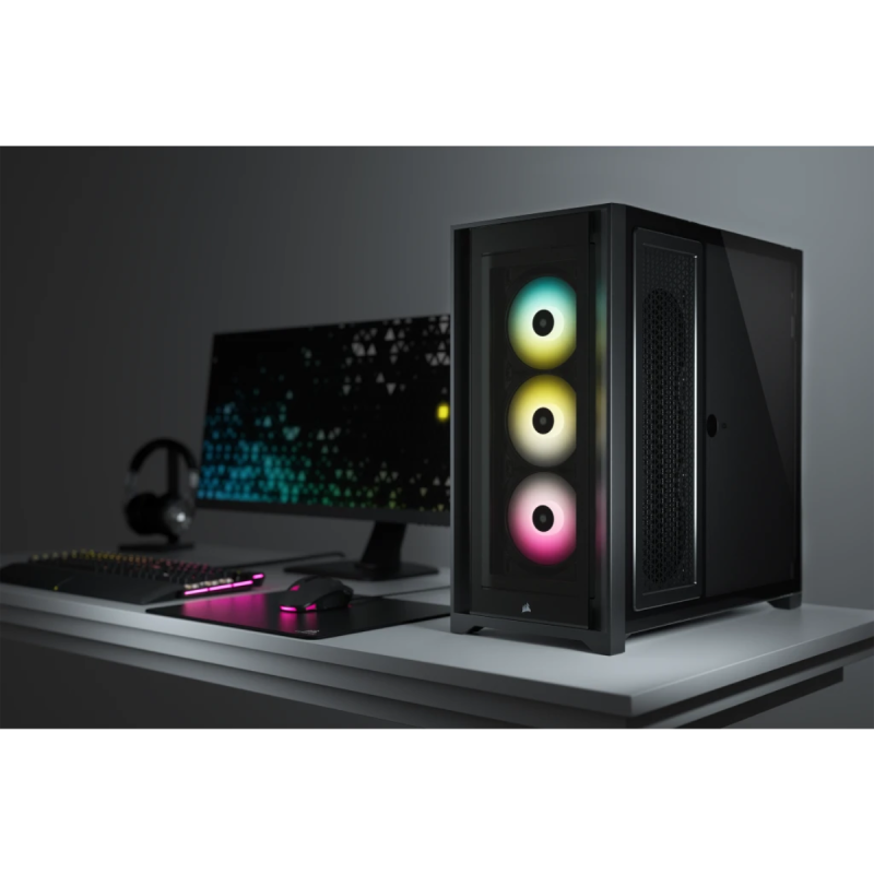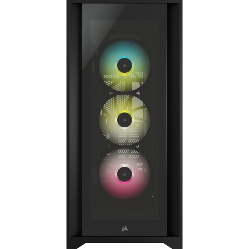 Boîtier Gamer Corsair iCUE 5000X RGB ATX Moyen-Tour - Éclairage RGB - Facteur de forme du boîtier: MOYENNE TOUR - Prise en charge de la carte mère du boîtier: (Mini-ITX | MicroATX | ATX | E-ATX (305 x 277 mm)) - Compatibilité des radiateurs: (120 mm, 140 mm, 240 mm, 280 mm, 360 mm) - Longueur maximale du GPU: 400 mm - Hauteur maximale du refroidisseur de processeur: 170 mm - Longueur maximale du bloc d'alimentation: 250 mm - Refroidisseurs de liquide compatibles: (H55, H60, H75, H80i, H90, H100i, H105, H110i, H115i, H150i) - Boîtier en Acier, Verre Trempé, Plastique - Alimentation du boîtier: ATX - Emplacements d'extension du boîtier: (7 verticaux + 2 horizontaux) - Baies de lecteur de boîtier: (2x 3.5" + 4x 2.5") - 1x USB-C 3.1 - 2x USB 3.0 - 1x entrée/sortie audio - Fenêtre de cas: Verre trempé - Dimensions: 520 x 245 x 520 mm - Poids: 15.63 kg - Couleur Noir - Garantie 1 an