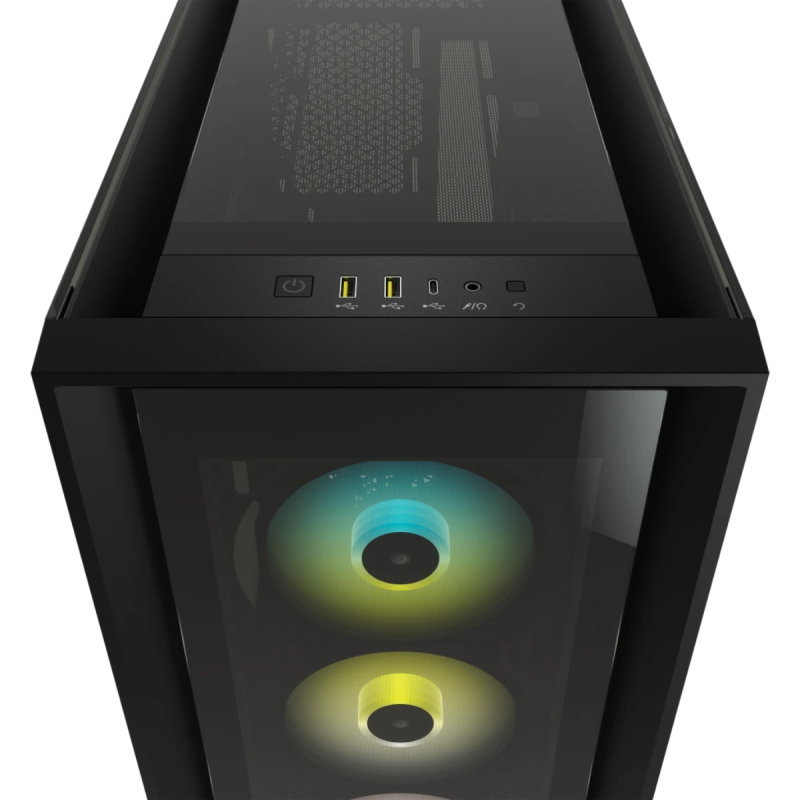 Le logiciel CORSAIR iCUE et l’iCUE Lighting Node CORE inclus vous permettent de contrôler et de synchroniser l’éclairage RGB sur jusqu’à six ventilateurs.