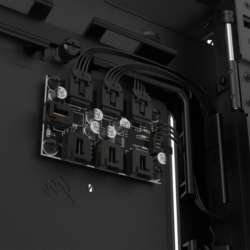 Un répéteur de ventilateur PWM contrôle les ventilateurs inclus, avec des connexions jusqu'à six au total. Réduisez la vitesse du ventilateur lorsque vous souhaitez garder votre système silencieux, ou augmentez-la lorsque vous souhaitez améliorer ses performances, le tout à partir d'un seul connecteur PWM à 4 broches sur votre carte mère.