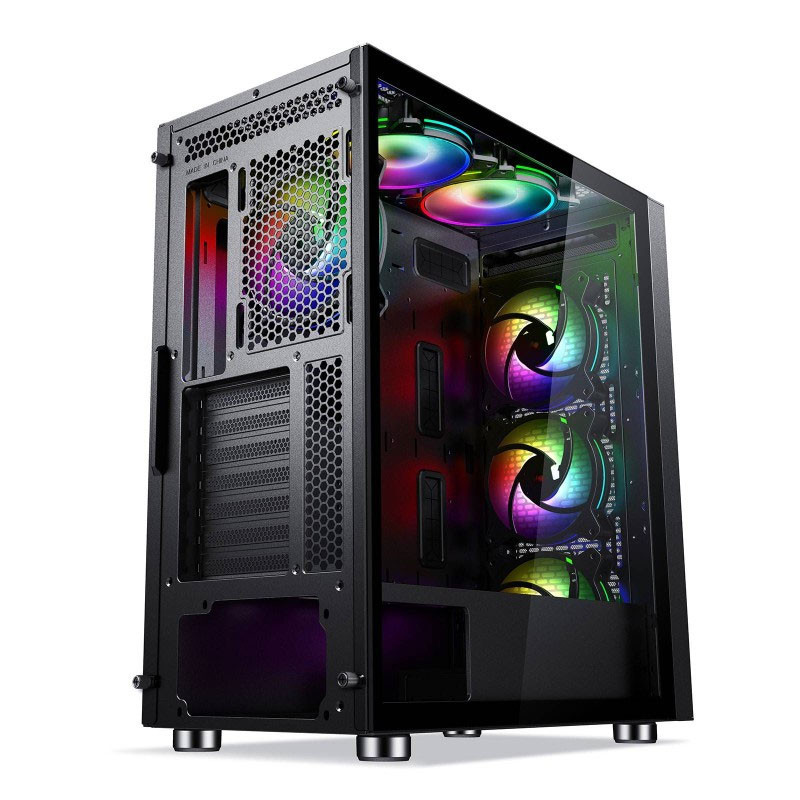 HYBROK BOITIER GAMING - Format du boitier : Moyen Tour - Format de carte mère : ITX, MicroATX, ATX - Ventilateurs fournis : 4 x 120 mm - Fenêtre : Oui - Matériau boitier : Plastique ABS, verre trempé, Acier - Dimensions (LxHxP) : 215 x 482 x 458 mm - Couleur : Noir - Garantie 1an