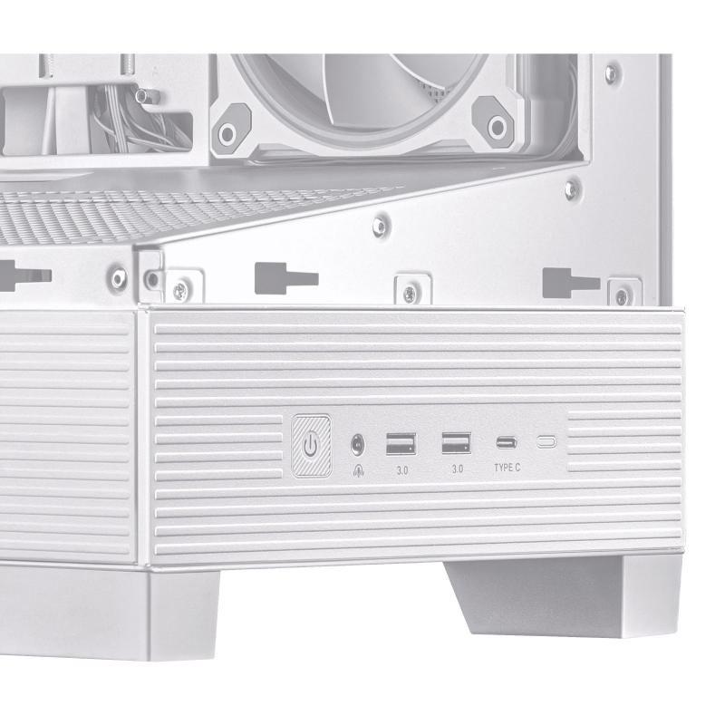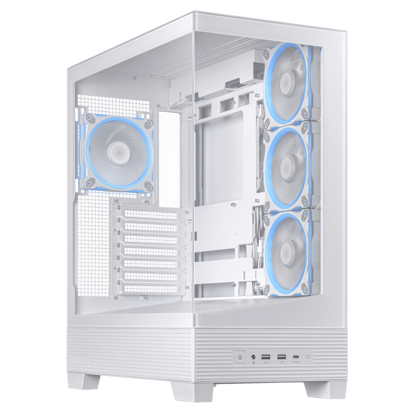 Support de carte mère : Mini-ITX, Micro-ATX, ATX - Baies de chargement : Baie de 2 x 2,5"/3,5" - Port d'E/S avant : 1 port USB 3.2 Gen 2x2 Type C, 2 ports USB 3.2 Gen 1, 1 prise casque/microphone - Support de radiateur (supérieur) : 120 mm, 140 mm, 240 mm, 280 mm, 360 mm - Support de radiateur (arrière) : 120 mm - Support de refroidissement (haut) : 3x 120 mm, 2 x 140 mm / (arrière) : 1x 120 mm, 1x 140 mm - Ventilateurs préinstallés (arrière) : 1 x 120 mm ARGB - Ventilateur préinstallé (côté) : ARGB 3 x 120 mm - Hauteur maximale du refroidisseur de processeur : 165 mm - Longueur maximale du GPU : 380 mm - Longueur maximale du bloc d'alimentation : 200 mm - Filtres à poussière amovibles : Bas / Haut - Espace maximal pour la gestion des câbles : 34 mm - Dimensions 238 x 511 x 435 mm - Poids 9.1 Kg - Garantie 1 an