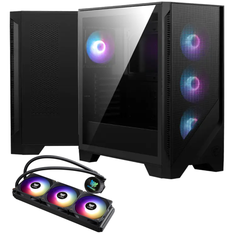 Boîtier Gaming Moyen Tour MSI MAG FORGE 320R AIRFLOW / ATX / ARGB / Noir Avec Kit Watercooling HYBROK HL360B Cooling 360ML / LGA 1851 / AM5 / ARGB / Noir