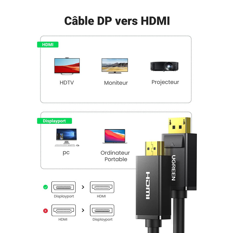 Câble DisplayPort vers HDMI 4K UHD UGREEN - 2M