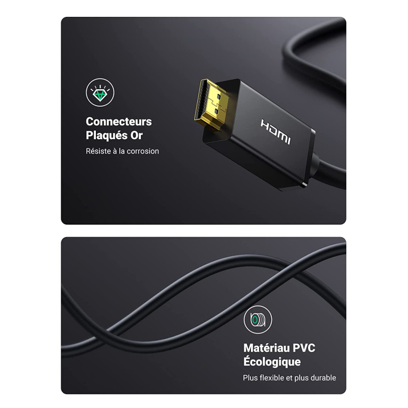 Câble DisplayPort vers HDMI 4K UHD UGREEN - Longueur 2m - Débit de transfert de données Jusqu'à 2.25 Gbps - Transmission Stable - Fiable et Robuste - Compatibilité Étendue
