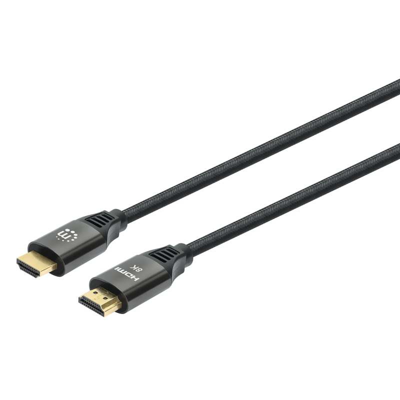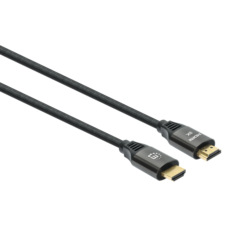 Câble HDMI ultra haut débit certifié 8K@60Hz avec Ethernet Manhattan - Résolution maximale: 8K (7680 x 4320) à 60 Hz - Bande passante maximale: 48 Gbit/s - Prend en charge: HDCP 2.3, CEC, Dynamic HDR, eARC, VRR, QMS, QFT et ALLM - Connecteurs: Deux HDMI 19 broche mâle - Contacts plaqués or - Câble 28 AWG - Double blindage: par feuilles et tresses Mylar - Résistance d'isolation: 5 MOhms - Résistance de contact: 10 Ohms - Tissu tressé - Gaine OD: 6.3 ±0.15 mm - Longueur: 2 m - Prend en charge Dolby Vision et Dolby Atmos - Audio 32 canaux non compressé - Couleur Noir