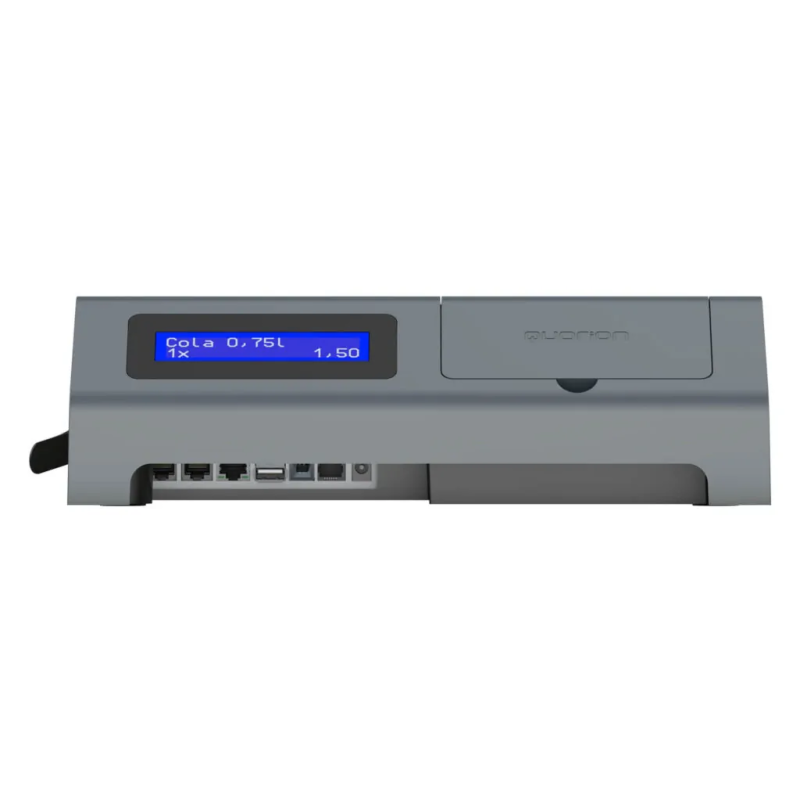 Caisse Enregistreuse intelligente QUORION QMP-6264 - Affichage de l'opérateur : Écran LCD, multiligne avec rétroéclairage bleu, 192 x 64 pixels, graphique - Affichage client : Écran LCD, 2 lignes avec rétroéclairage bleu, 192 x 32 pixels, graphique - Imprimante : Options intégrées : 58 MM / 80 MM - Logiciel de point de vente : QMP 2.0 - Processeur ARM Cortex-A9 400 MHz - Mémoire de travail : 32 Mo de SDRAM - Mémoire système : eMMC 4 Go - Interfaces : 2 x RS232-5V (RJ45), 3 x USB (2 x USB type A, 1 x USB type B), 1 x LAN (100 Mbit), 1 x RJ11-9V pour tiroir-caisse - Dimensions :L x l x H : 365 x 335 x 105 mm - Poids : 2 Kg - Couleur Gris - Garantie 1 an