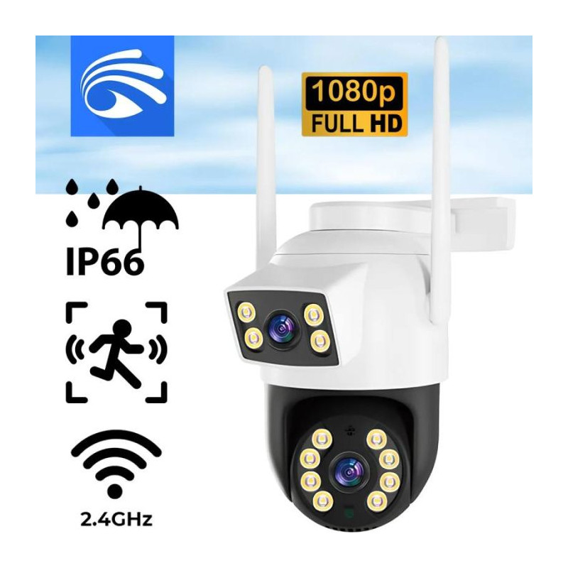 Caméra De Surveillance Externe JORTAN JT-8695QJB WIFI IP 2MP - Qualité de résolution: HD 1080p -Objectif: 3.6 mm - Pixel: 2+2 MP - Tension: Bivolt - Fréquence: 2.4 GHz - Deux antennes - wifi - Conçu pour extérieur - vision nocturne - Double caméra avec réduction des angles morts - Communication audio bidirectionnelle - Détection de mouvement - Fonction de suivi automatique qui suit les mouvements - Application YOOSEE - Degré de protection contre l'eau: IP66 - Couleur Blanc - Garantie 1an