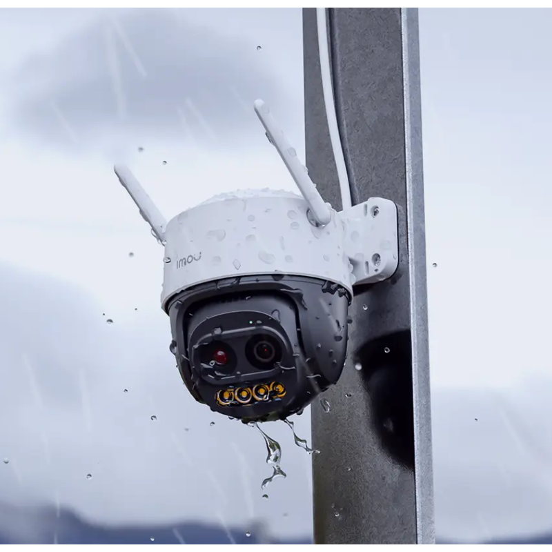 Capteur CMOS progressif 1/3" 5MP - Vision nocturne : portée de 56 m - Objectifs : 2,8 mm à F1.6 + 12 mm à F1.6 - Compression vidéo : H.265/H.264 - Fréquence d'images jusqu’à 15 images/s - zoom mixte 12x - Champ de vision : 2,8 mm : 95,3° (H), 52,1° (V), 113,7° (D) / 2 mm : 24,4° (H), 14° (V), 28,1° (D) - Rotation horizontale : 355° / verticale : 90° - Emplacement pour carte Micro SD (jusqu'à 512 Go) - Microphone et haut-parleur intégrés - sirène 110 dB - projecteur intégré - Bouton de réinitialisation - 1 port Ethernet 100 Mbps, Wi-Fi 6 - Application Imou : iOS, Android - Gestion des avis : Détection de mouvement, Détection humaine, détection de véhicules, zone configurable, voix personnalisée - Indice de protection IP66 - Dimensions : 129 × 110 × 110 mm - Poids : 438 g - Couleur Blanc - Garantie 1 an