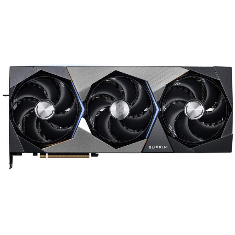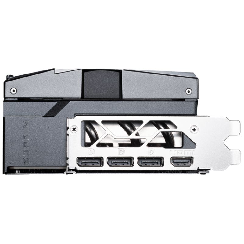 Carte graphique MSI NVIDIA GeForce RTX 5080 SUPRIM SOC - Interface : PCI Express Gen 5 x16 - Horloges de base : Performances extrêmes : 2 760 MHz (MSI Center) / Fréquence Boost : 2745 MHz - NŒUDS CUDA : 10752 unités - Vitesse de la mémoire : 30 Gbit/s - Mémoire : 16 Go GDDR7 - Bus mémoire : 256 bits - Sortir : 3x DisplayPort (v2.1b) / 1x HDMI - Prise en charge HDCP - Consommation d'énergie : 360 W - Connecteurs d'alimentation : 16 broches x 1 (alimentation ATX 3.1 recommandée) - Bloc d'alimentation recommandé : 850 W - Prise en charge des versions DirectX : 12 Ultime - Prise en charge des versions OpenGL 4.6 - Affichages maximum : 4 - Technologie G- SYNC - Résolution numérique maximale : 7680 x 4320 - Dimensions de la carte : 359 x 150 x 76 mm - Poids : 2614 g - Garantie 1 an