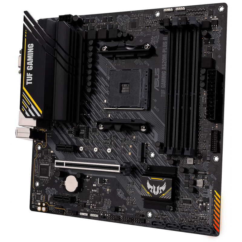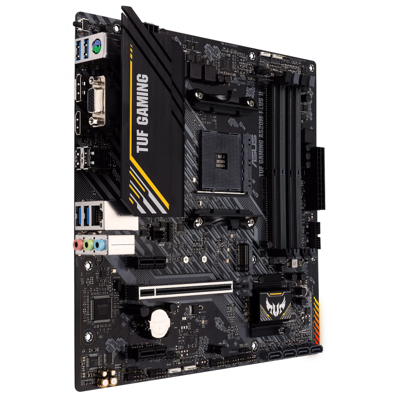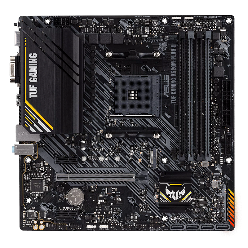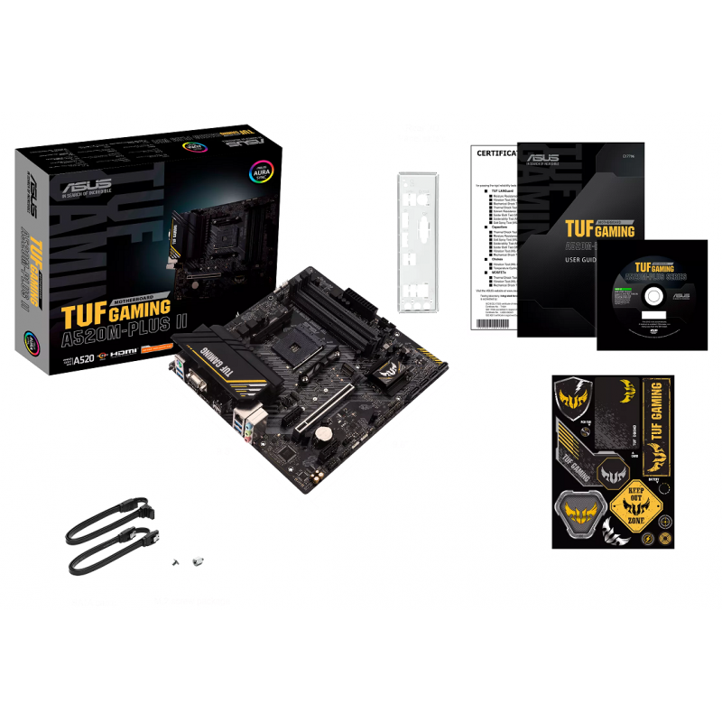 TUF GAMING A520M-Plus II fournit un ensemble complet de jeux hautes performances avec une longue liste de fonctionnalités pour améliorer votre expérience, y compris une mise en réseau ultrarapide pour un jeu en ligne plus fluide et un éclairage RGB intégré qui se synchronise avec les accessoires attachés pour vous aider à créer une atmosphère de jeu personnalisée..