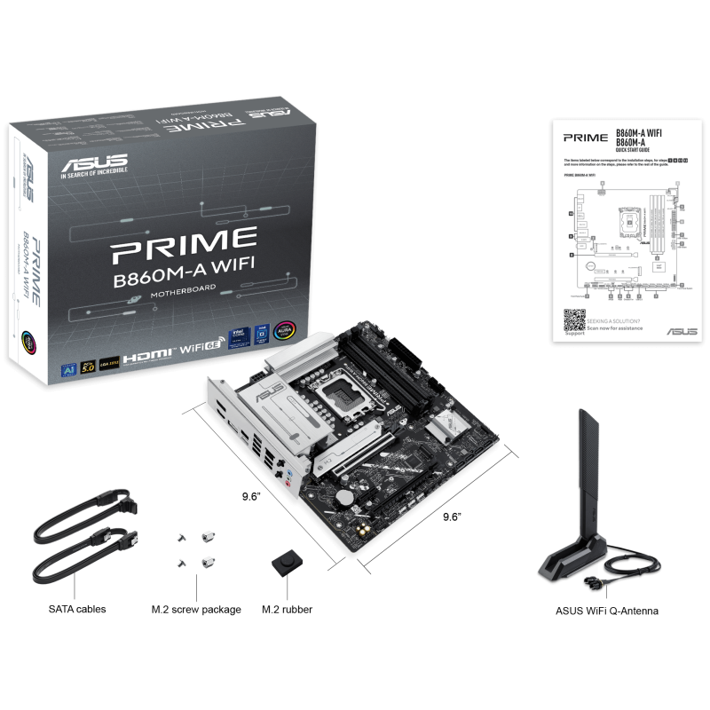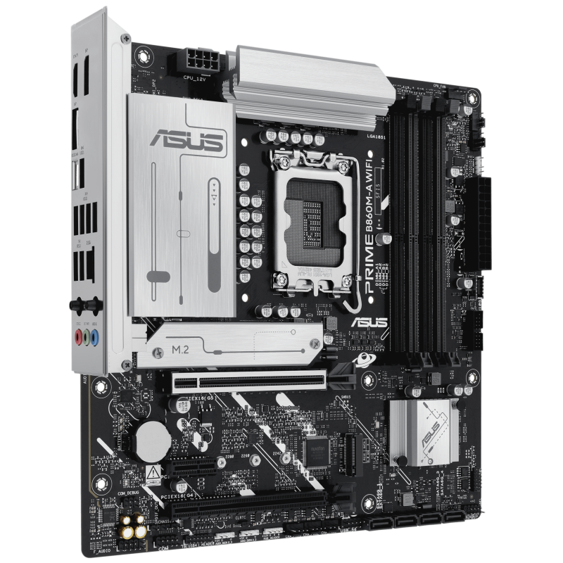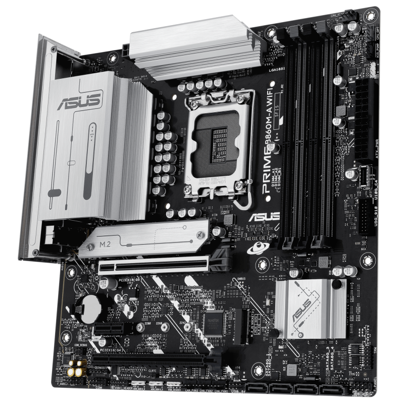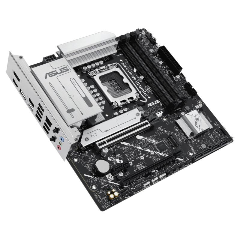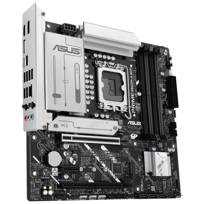 Carte mère ASUS PRIME B860M-A - Prise en charge des processeurs Intel Core Ultra (série 2), LGA1851 - Prise en charge des technologies Intel Turbo Boost 2.0 et Intel Turbo Boost Max 3.0 - Jeu de puces : Chipset Intel B860 - 4 emplacements DIMM, max. 256 Go, DDR5 - Connecteurs d'E/S internes : 2 emplacements M.2 - Emplacement PCIe 5.0 - 4 ports SATA 6 Gbit/s - 2x port DisplayPort - 1x port HDM - 1 x port USB 20 Gbit/s (USB Type-C) - 1x port USB 10 Gbit/s, 2x ports USB 5 Gbit/s, 4x ports USB 2.0 - 1 x Realtek 2,5 Gb Ethernet - Wi-Fi 6E, Bluetooth 5.3 - USB arrière (8 ports au total), USB avant (5 ports au total) - Format micro-ATX - Dimensions : 24,4 cm x 24,4 cm - Garantie 1 an