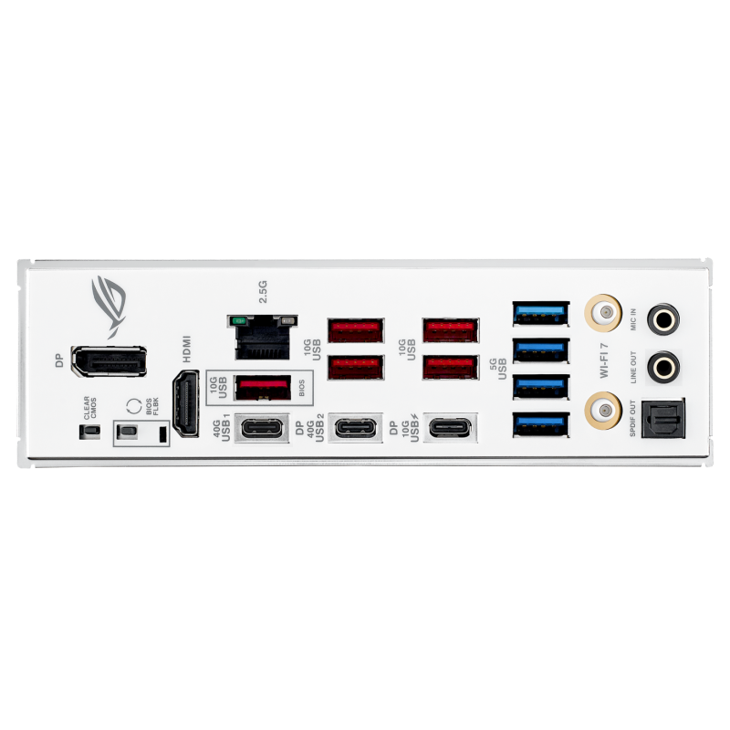 Socket AMD AM5 pour processeurs de bureau AMD Ryzen séries 9000, 8000 et 7000 - Jeu de puces : AMD X870 - Mémoire : 4 emplacements DIMM, max. 256 Go, DDR5 - 4 emplacements M.2 - 2 ports SATA 6 Gbit/s - 1x Intel 2.5 Gb Ethernet - Wi-Fi 7 - Bluetooth 5.4 - Audio : Technologie de blindage SupremeFX / Amplificateur Savitech SV3H712 / Port de sortie optique S/PDIF arrière / Condensateurs audio haut de gamme / Cache audio - 2x ports USB Type-C 40 Gbit/s - 6x ports USB 10 Gbit/s (5 Type-A + 1 USB Type-C avec charge rapide PD/PPD jusqu'à 30 W) - 4x ports USB 5 Gbit/s (4 Type-A) - 1x DisplayPort - 1x port HDMI - 1x module Wi-Fi - 1x port Ethernet Intel 2.5 Gb - prises audio - 1x port de sortie optique S/PDIF - 1x bouton BIOS FlashBack - 1x bouton Clear CMOS - Aura Sync - Facteur de forme : ATX (30.5 x 24.4 cm) - Garantie 1 an