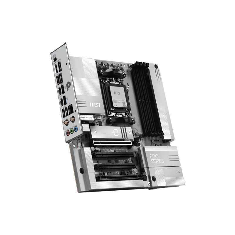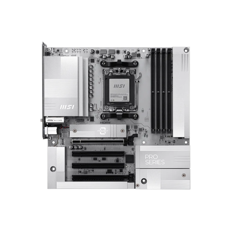 Carte mère MSI PRO B850M-A WIFI PZ - Jeu de puces: AMD B850 - Processeur: Compatible avec les processeurs de bureau AMD Ryzen séries 9000/8000/7000 (socket AM5) - Mémoire: 4 emplacements DDR5 UDIMM, capacité mémoire maximale de 256 Go - 1 port HDMI 2.1 - 1 port DisplayPort 1.4 - 4 emplacements PCI-E x16 - Audio haute définition 7.1 canaux Realtek ALC897 - 2 emplacements M.2 - 4 ports SATA 6 Gb/ s - Prend en charge les modes RAID 0, RAID 1 et RAID 10 pour les périphériques de stockage M.2 NVMe / SATA - 4 ports USB 2.0 (avant) - 3 ports USB 5 Gbit/s Type A (arrière) - 2 ports USB 5 Gbit/s Type A (avant) - 3 ports USB 10 Gbit/s Type A (arrière) - 2 ports USB 10 Gbit/s Type C (arrière) - 1 port USB 10 Gbit/s Type C (avant) - Wi-Fi 7 - Bluetooth 5.4 - Format: mATX - Dimensions: 243.84 mm x 243.84 mm - Garantie 1 an