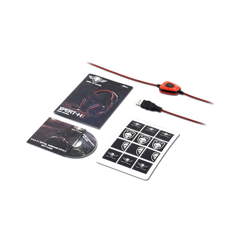 Casque-micro pour gamer - Son Stéréo Surround 7.1 Virtuel - Prise USB - Longueur du câble: 2.95 m (±3cm) - Câble gainé et renforcé - Télécommande multifonction rétro-éclairé - Diamètre des écouteurs: Ø 40 mm - Type d’aimants: néodymes (NdFeB) - Réponse en fréquence: 20-20.000 Hz - Logiciel et Pilote: S.O.G Surround 7.1 virtuel inclus - Poids: 233 g - Couleur: Noir et Rouge - Garantie 1 an