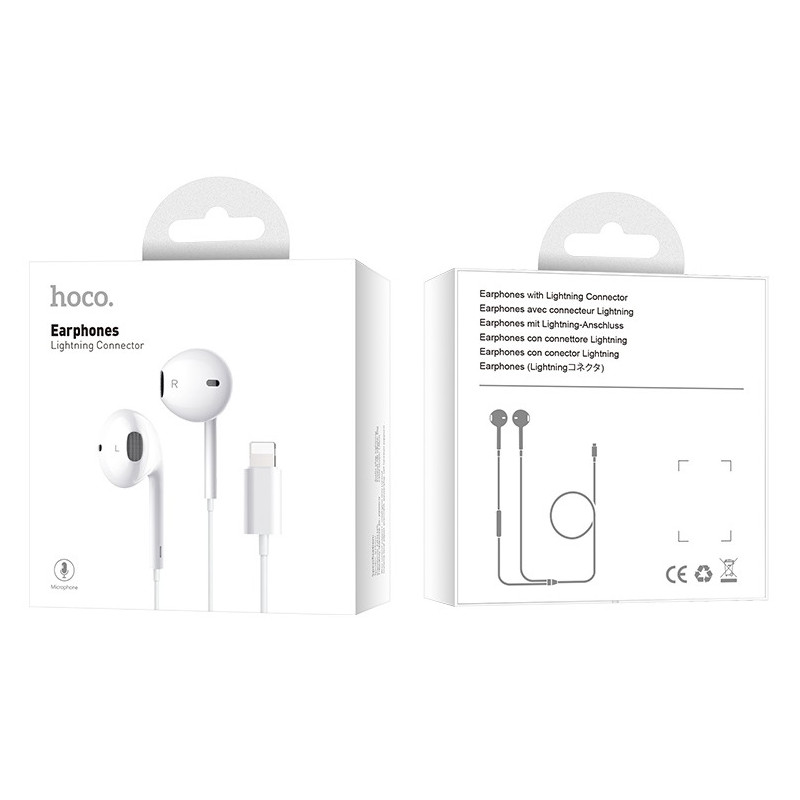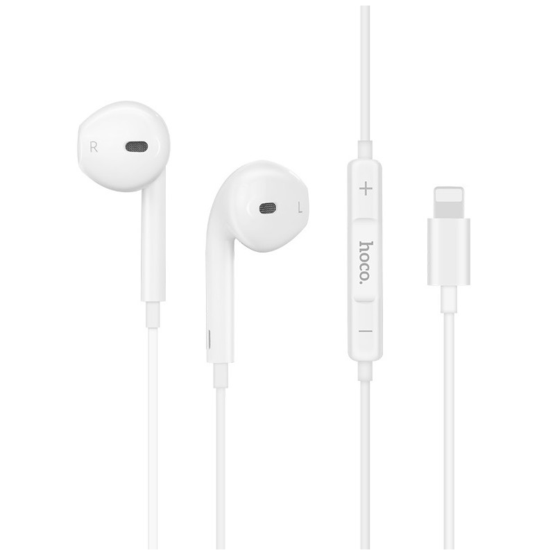 Écouteurs HOCO avec microphone pour iPhone - Haut-parleur: 14 mm - fréquence est de 20 à 20000 Hz - Sensibilité: 95 dB ± 3 dB - Compatible avec les téléphones d'interface lightning - Longueur de câble: 1.2 m - Poids: 10 g - Couleur: Blanc