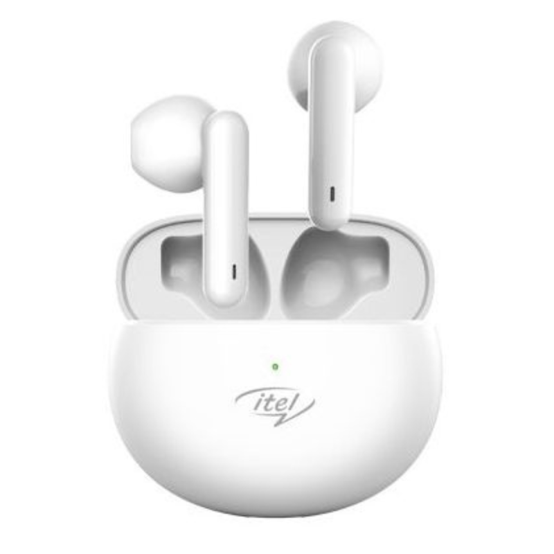 Écouteurs sans fil ITEL NEO Earbuds T1 - Annulation des bruits d'appel (DSP) - Haut-parleurs de 13,4 mm pour l'amplification des basses - Design demi-oreille ergonomique - Résistant à l'eau IPX5 - Charge Type-c - Boitier de charge: 350mAh - Distance de fonctionnement: 10M - Autonomie de la batterie: 4 heures d’autonomie / 3,5 heures de conversation - Couleur Blanc - Garantie 1 an