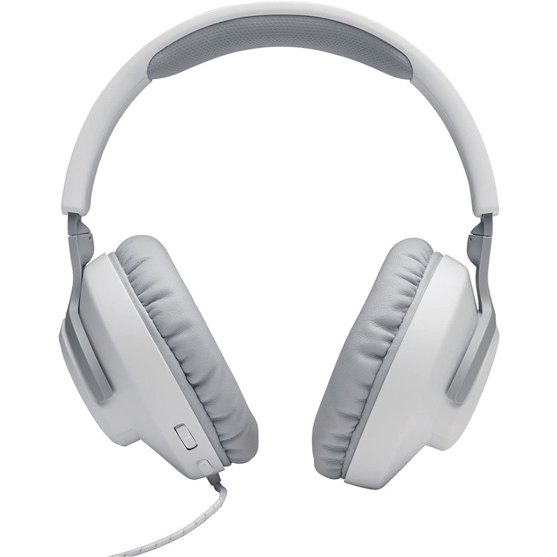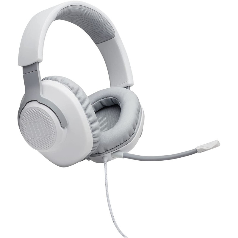 Micro-Casque Gaming Sans Fil JBL Quantum 100 - Taille des Hauts-Parleurs: 40 mm - Sensibilité des Haut-Parleurs: 96 dB SPL à 1 kHz - Réponse en fréquence dynamique: 20 Hz - 20 kHz - Impédance: 32 ohms - Réponse en fréquence passive: 20 Hz – 20 kHz - Temps de charge: 2 heures - Autonomie de lecture maximum: 22 heures - Microphone intégré - Couleur Blanc - Garantie 1 an