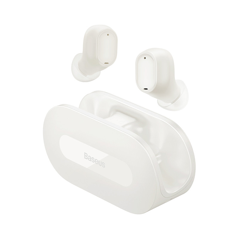 Écouteurs Bluetooth TWS Baseus - Bluetooth 5.3 - Capacité de la Batterie : 300 mAh - Temps de charge du boîtier : 90 min - Portée 10 m - Autonomie de la batterie 25 heures - Temps d'écoute, conversation maximum 5 heures - Fonctions : recevoir des appels, contrôle de la musique, service d'assistance vocale - compatibles avec les appareils Android et iOS - Connecteur : USB-C - Couleur : blanc - Garantie 1 an